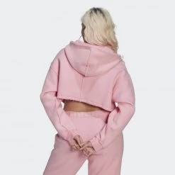 Το φθηνότερο 🥰 Μπλούζα Με Κουκούλα Adidas Originals Crop Full-Zip Loungewear Hoodie PINK 🥰